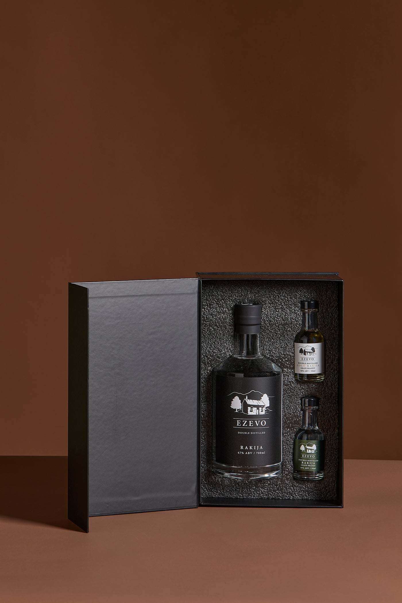 Ezevo Clear Gift Set: Ezevo Clear Rakija 700ml, Ezevo Gold Rakija 50ml, Ezevo Classic Rakija 50ml